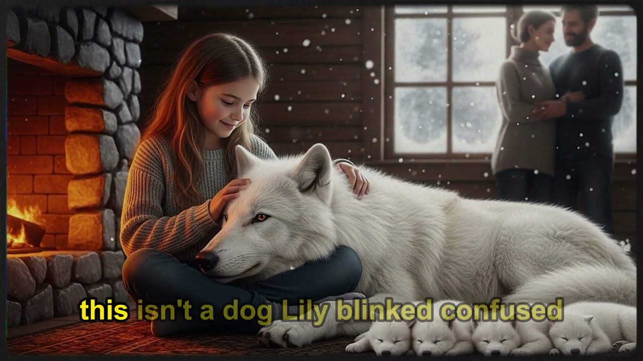 Her father rushed out, eyes widening. That’s no dog from around here. But before anyone could stop her, Lily whispered, “Please, he’s hurt.” and gently lowered the animal onto a rug near the fireplace. Steam rose as melting snow dripped from its thick white fur. The pup circled anxiously, their tiny whimpers echoing in the quiet room.