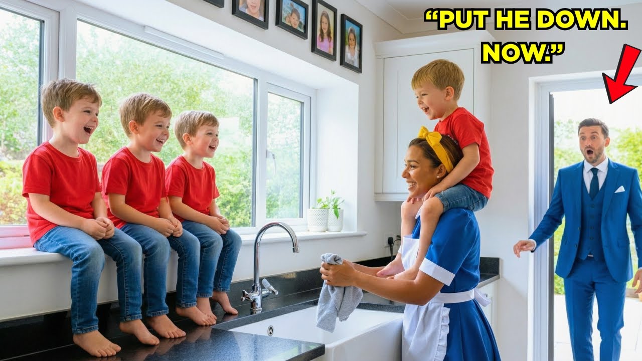 Millionaire came home unannounced and saw the maid with his four sons. What he saw shocked him. Ethan Caldwell came home without warning. No one knew he was back. Not his assistant, not Mrs. Callahan, not even the four boys who carried his last name. His flight from Copenhagen touched down just as the first line of dawn brushed the tops of the trees.