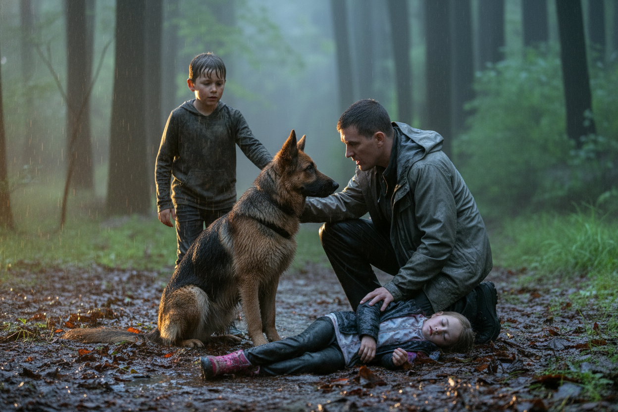 Less than five minutes later, the Shepherd led them to a patch of thick brush where a little girl lay unconscious. Her clothes were soaked through. Her lips pale. But she was breathing—shallow, but steady.