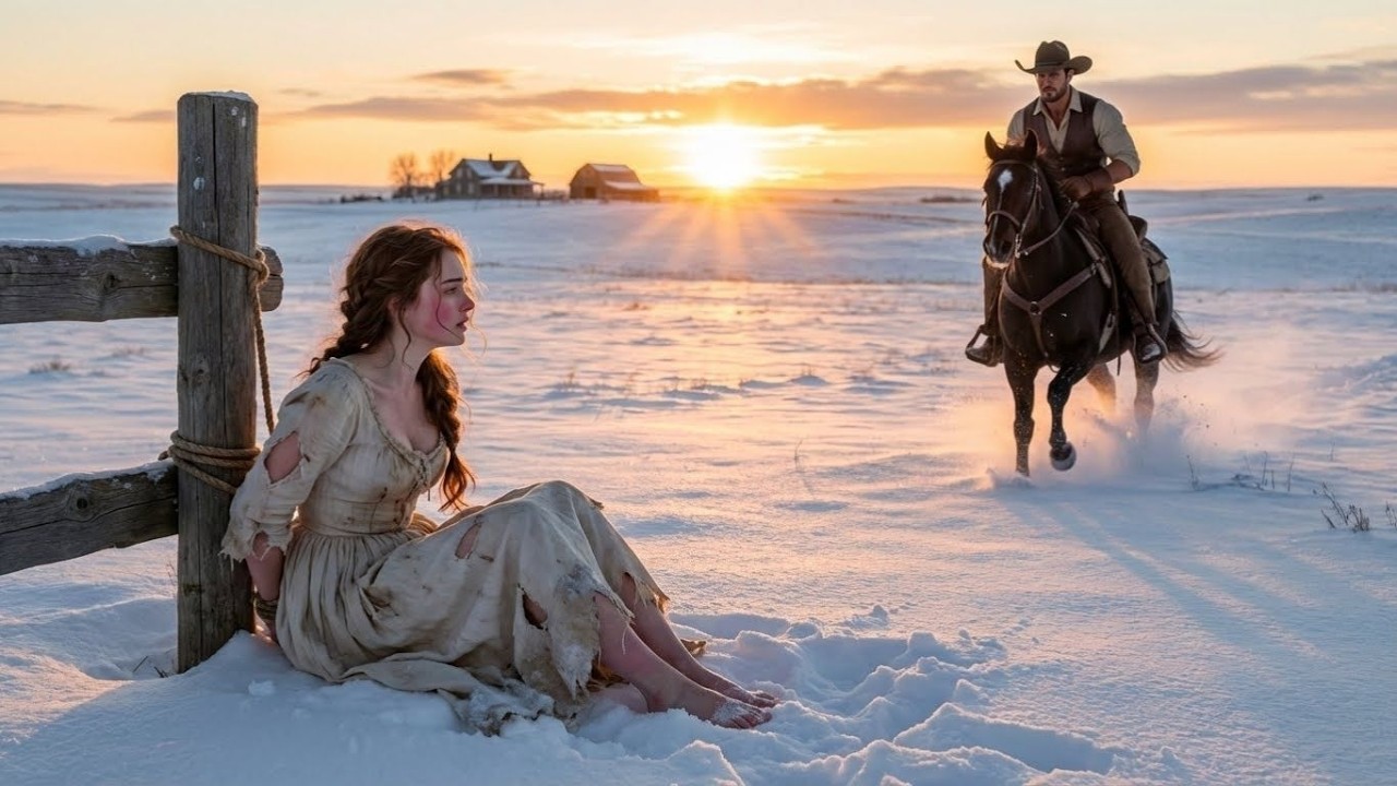 The girl was tied to a fence in the blizzard by her cruel in-laws until the rancher rode in. She comes with me. Kansas, winter of 1886. The prairie lay buried under a sky of ice, and the wind screamed like something alive. The storm had been building all afternoon, rolling across the flatlands with a force that swallowed the horizon.