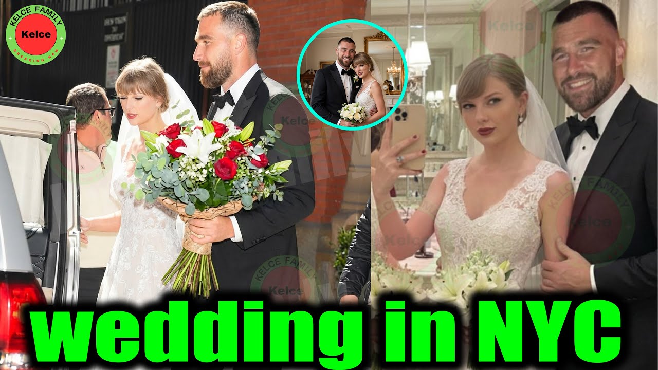 On a crisp late-November morning, as the soft golden sunshine of a New York City Sunday filtered through the canyon-like streets of Tribeca, the world of celebrity gossip didn’t just heat up—it exploded. The seemingly ordinary day was instantly transformed into a cinematic moment, a scene so perfectly orchestrated it felt ripped from the pages of a high-gloss romance novel. Emerging from a luxurious, stately building in Manhattan’s most exclusive neighborhood were Taylor Swift and Travis Kelce, the couple whose every movement already commands global attention. Only this time, their appearance was not a quiet date night, but a resounding declaration: they were dressed in full bridal and groom attire.