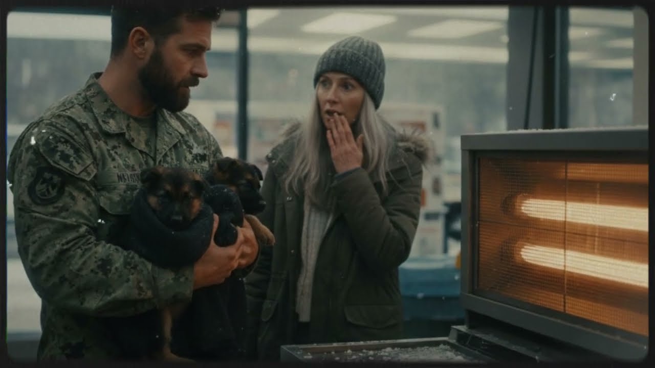 Two tiny German Shepherd puppies buried beneath the storm’s breath pressed against each other inside a torn blanket. Their cries were too soft for the world to hear. Somewhere down that same frozen highway, a Navy Seal named Logan Hayes drove alone. His headlights slicing through the white silence, his heart heavy with ghosts of a war that never ended. He wasn’t looking for redemption.