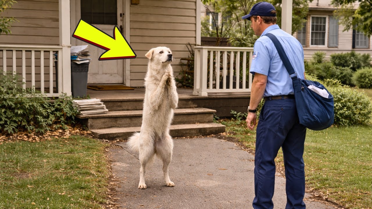 Neighbors offered food and water, but the dog ate very little and always returned to its place, as if leaving meant abandoning something far more important. On the fifth morning, the mailman arrived and immediately noticed something was wrong. The mailbox was stuffed, untouched for days. As he stepped closer to the porch, the white dog suddenly stood up and walked toward him.