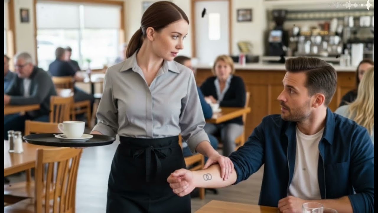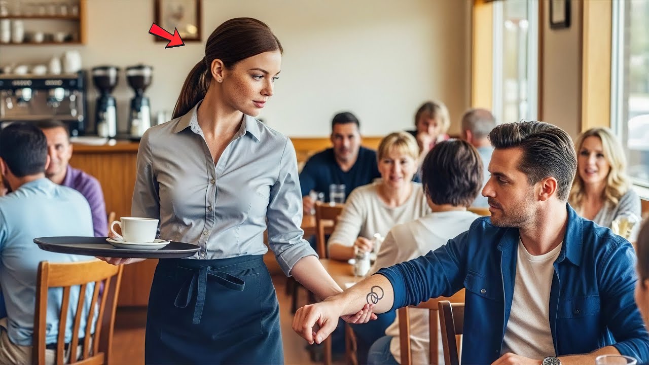 A waitress approached with a notebook in hand. She looked no older than 26. Auburn hair tied back, soft freckles on her cheeks, and tired but gentle eyes. Her name tag read Sophie Warren. Good afternoon, she greeted with a small smile. Table for one. Yes, Ethan nodded. She led him to a corner seat. As he settled in, he pushed up his left sleeve slightly, absent-mindedly, revealing a tattoo on his wrist.