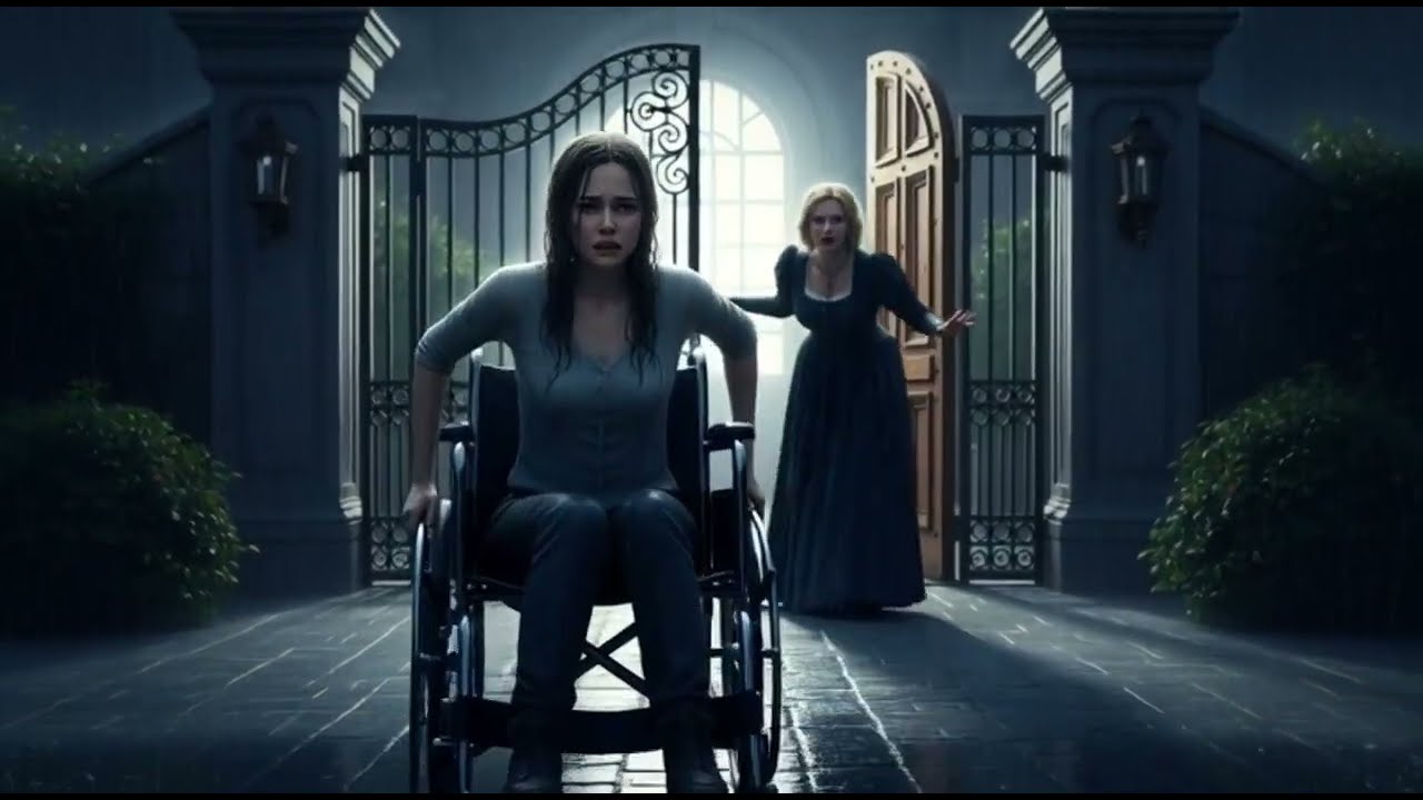 The lights in the mansion turned off, and Aurora sat there, paralyzed, grieving, abandoned, unable to push herself anywhere. Cars passed. People stared. No one stopped. Her phone battery was dead. She had no wallet, no shelter, no family left. The storm grew heavier. Wind whipping through the trees. That’s when she heard a small voice.