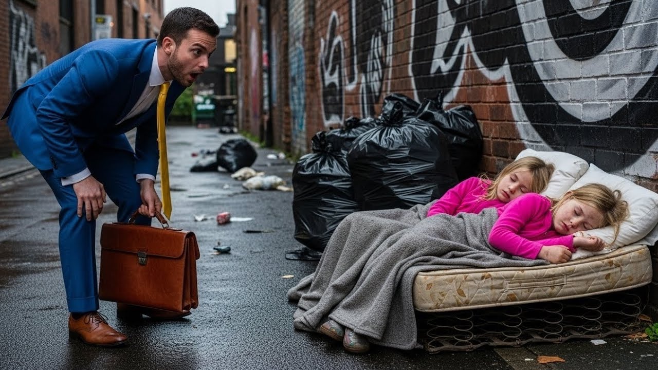 There, in a narrow alley behind his own corporate building, lying on a torn mattress beside piles of trash, were two little girls. Not strangers, not someone else’s children, his daughters, his twins. Reva and Ayla Crowford, only seven years old, sleeping on the cold pavement like abandoned souls.