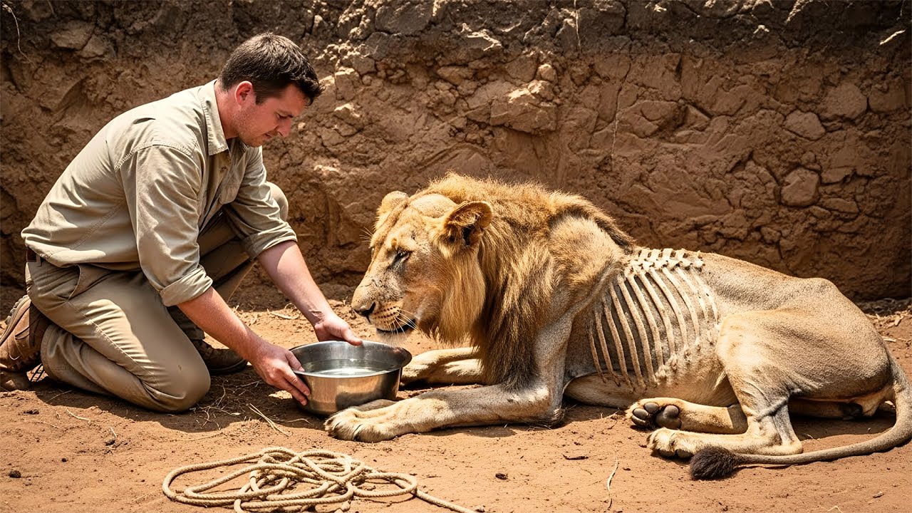 Alex Thompson’s hands trembled as he lowered the bowl of water toward the dying lion. Each of the beast’s ribs protruded sharply through its dull, matted burr. A living skeleton where a majestic predator should have been. The lion’s eyes once fierce amber beacons had dulled to a glassy resignation that recognized death’s approach.