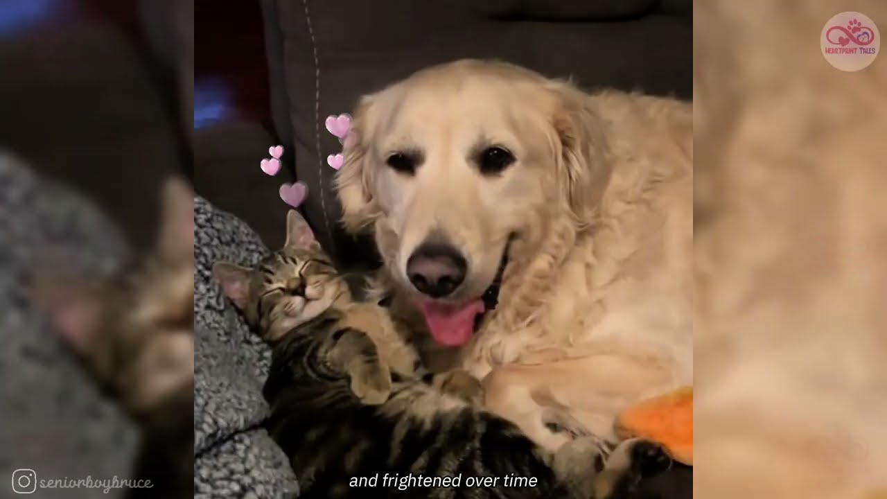 That’s how trout came into their lives. When he arrived, Bruce was curious but calm, just watching from a distance. The little one was scared and hissed at everything, unsure of where he was. But Bruce never pushed. He didn’t chase or lick. He simply stayed nearby, quiet and patient, as if saying, “It’s okay.” Slowly, the kitten began to relax.