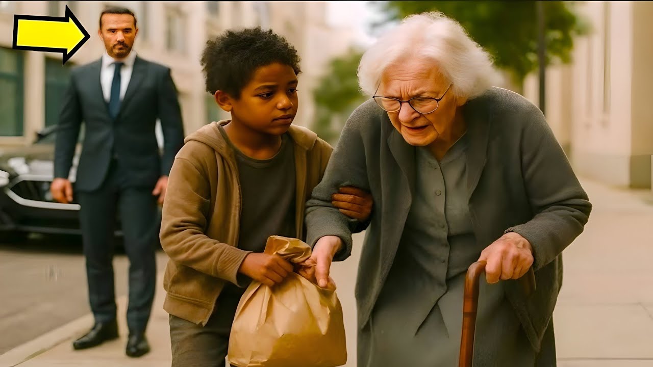 Homeless boy helps old lady, not knowing she is the millionaire mom. What he did next is amazing. A homeless boy stepped forward. When the world stepped aside, helping an old woman everyone ignored. But when a millionaire accused him, the truth shattered everything. Compassion outshined money.