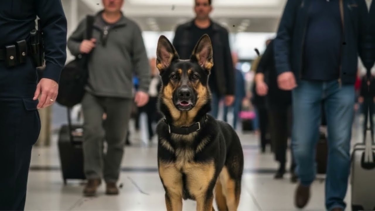 His voice trembled. “Thank you. You saved us.” Shadow’s ears flicked gently, as if acknowledging the gratitude. But how did things reach this moment? To understand that, we must go back. Not to the start, but to the instant Shadow sensed something no one else could. The airport was a maze of movement. Rolling bags, tapping shoes, layers of human scent, routine noise, normal chaos.