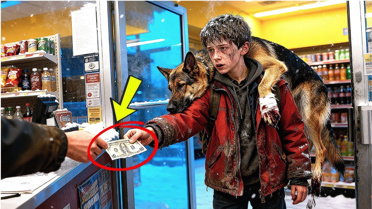 Snow fell softly over the deserted street as a young boy stumbled into a small store. Shivering, his clothes were torn, his cheeks red from the freezing wind. Clinging to his back was a wounded German Shepherd. Whimpering weakly, the boy placed a crumpled $10 bill on the counter. “Please,” he whispered.