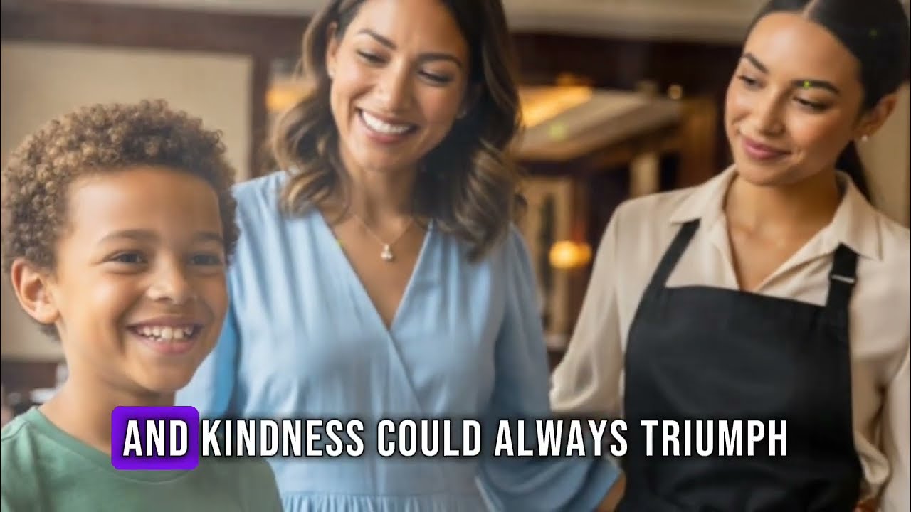 The boy and his mother stayed at the table a little longer, savoring the peace that had descended. Light filtered through the windows in a golden embrace, making the polished wood gleam like hope itself. In that small sunlight moment, the boy’s laughter broke the tension, pure and unrestrained, echoing across the restaurant like a promise that silence could never be weakness and kindness could always triumph.