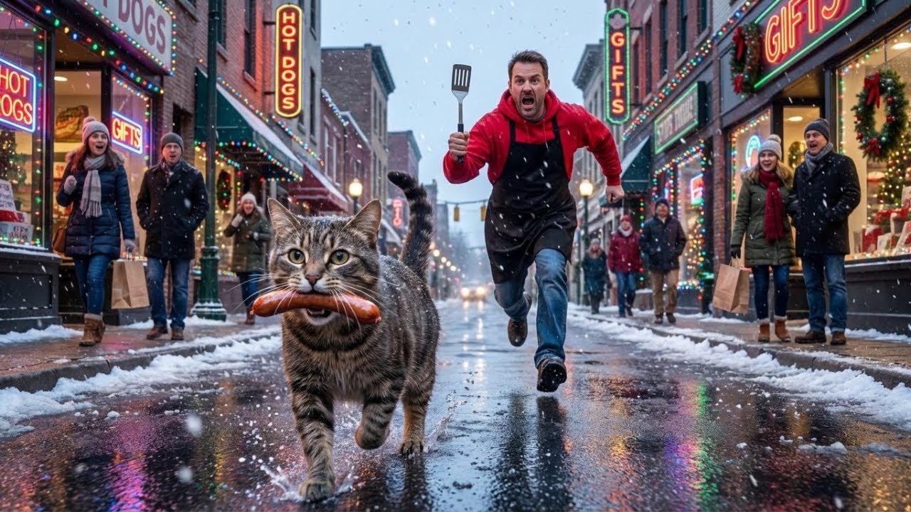In the glowing heart of a bustling city, where the scent of pine and cinnamon usually fills the air, a different kind of story was unfolding this Christmas. While the shop windows glittered with expensive displays and families hurried home with arms full of wrapped gifts, a silent shadow moved through the slush. It was a mother cat, her fur matted into wet, grey clumps by a relentless winter storm that had turned the festive evening into a battle for survival.