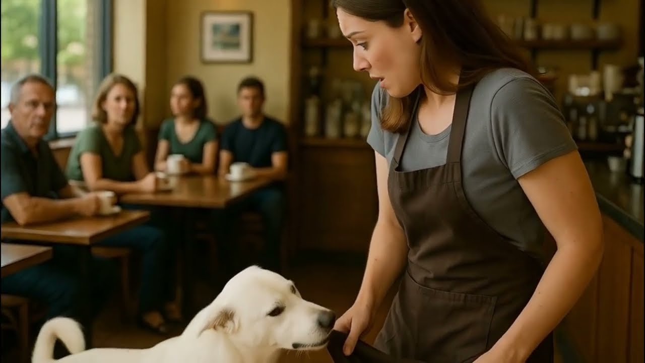 The cafe had just opened for the morning rush. A few customers were sipping coffee, scrolling through their phones, when the front door suddenly banged open, heads turned. A white dog burst in, panting hard, eyes bright with purpose. It barked sharply once, twice, then ran toward the counter. The barista shouted in surprise, nearly dropping a tray of cups.