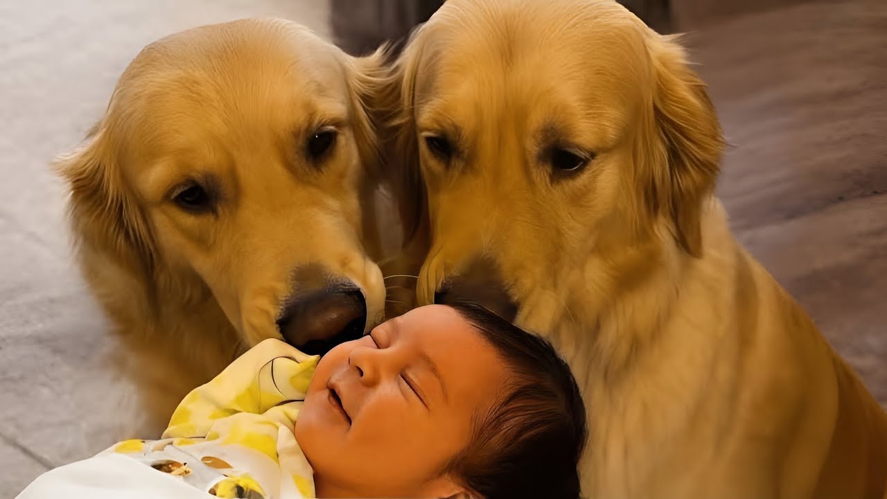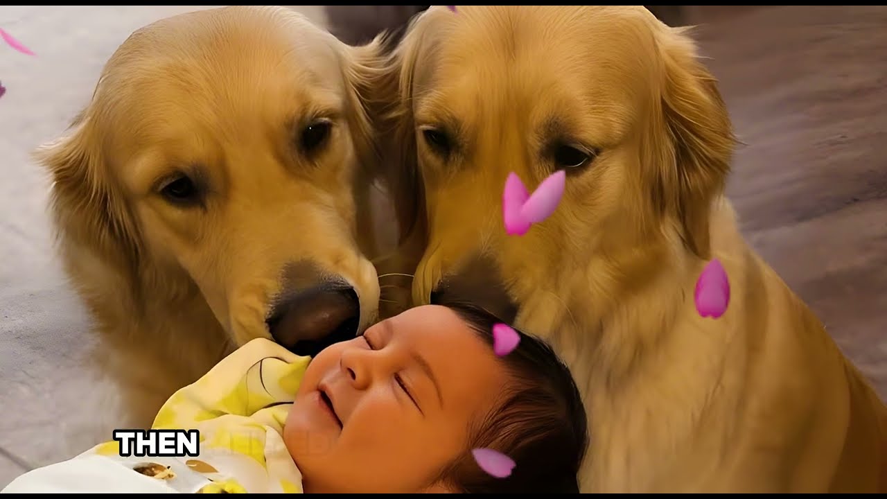 These golden retrievers twins fallen in love with the baby. This is what they did during separation. These golden retriever twins adored the baby from the first breath. But when the parents tried to separate them for just a few hours, everything spiraled into something no one expected. They cried, they panicked, they gathered every toy they owned, then did something so emotional the parents froze.