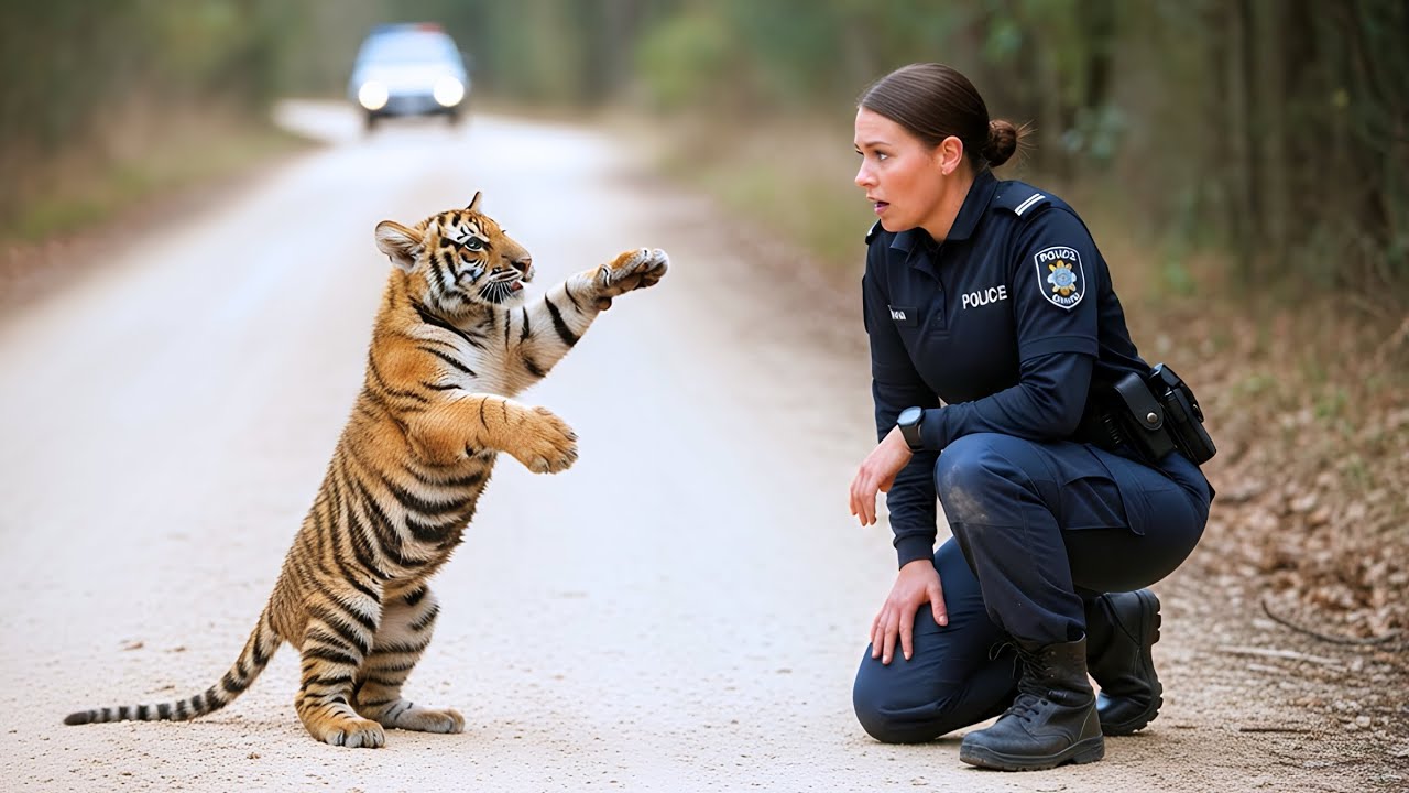 She saw a flicker of movement, a small anomaly on the long, empty road, and eased her foot off the accelerator. As she drew closer, her professional calm shattered. It was a cub. A tiger cub. Her mind raced through protocols. Call wildlife services. Maintain a safe distance. Assess for the mother.