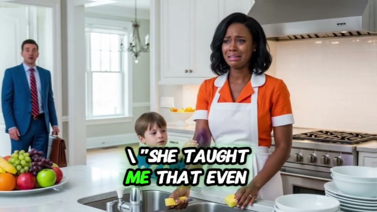 But there was something else about this house, something that made her heart ache every single day. His son Tommy, the boy, was 7 years old, with soft brown hair and eyes that seemed to hold an old soul. He would sit at the kitchen counter every afternoon watching her work, never saying a word, never making a sound. Mr. Harrison had explained it to her on her first day.