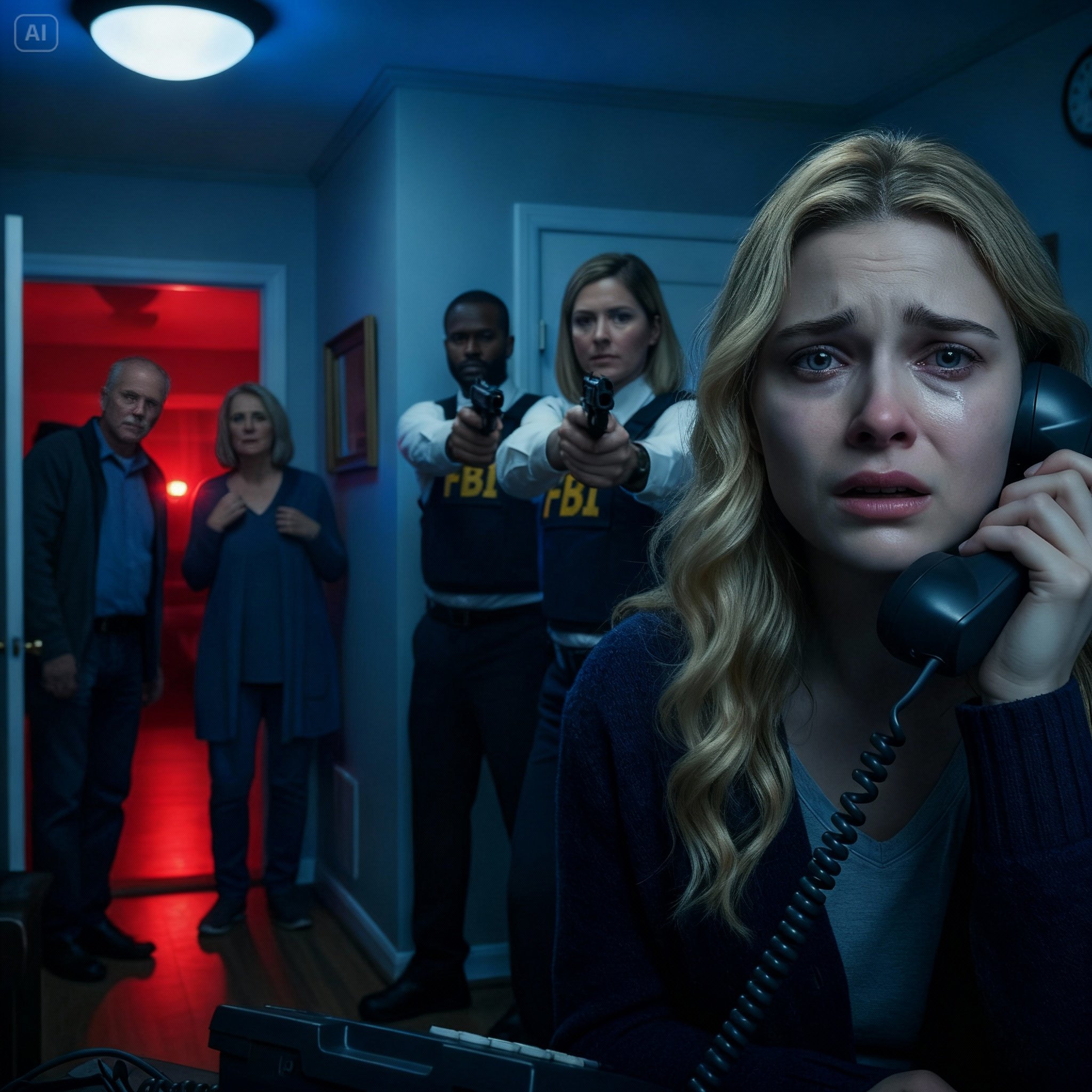 She pulled me aside as the agents began to file out, their evidence cases full. My father was being led out in handcuffs. The sight of his wrists, bound by metal, broke something inside me. He wouldn’t look at me.