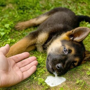 There was a German Shepherd puppy in my garden, poisoned, barely breathing. I dropped the watering can. It hit the ground with a…