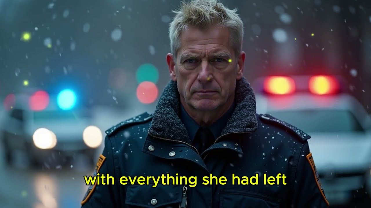 Lucas recognized that light instantly. A police cruiser. It rolled to a stop beside the black SUV. The headlights remained on, flooding the house, the yard, the men, everything with a clarity that felt almost like relief. The driver’s door opened. What’s going on here? Officer Grant Miller stepped out, tall and broad shouldered, snow gathering on his jacket.